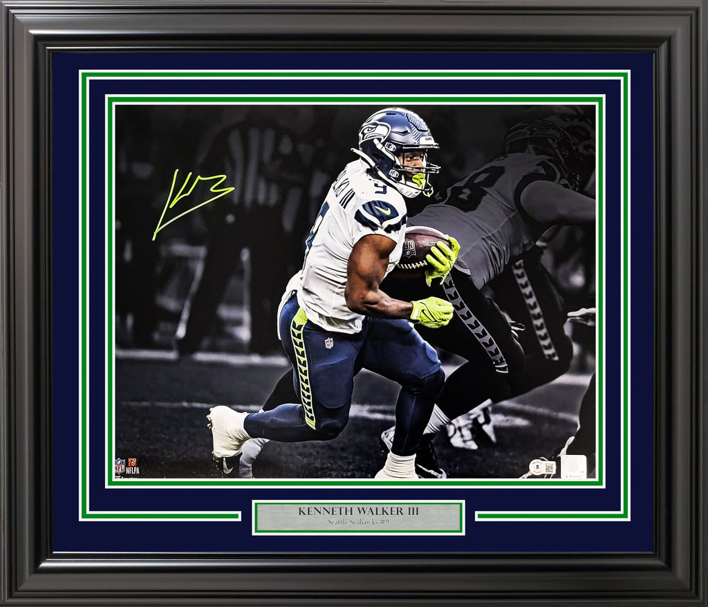 This is a Framed 16x20 Photo, approximately 24x28 with the frame, that has been hand signed by Kenneth Walker III. This item has been witnessed and certified authentic by Beckett Authentication (BAS) and comes with their tamper-proof witness sticker. Beckett Authentication has recently changed their physical certificate card policy where they no longer match their tamper-proof sticker with a physical certificate. A certificate can be printed on Beckett's website for the matching authentication number.