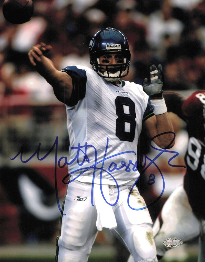 This is an 8x10 Photo that has been hand signed by Matt Hasselbeck. This item was signed in the presence of a Mill Creek Sports representative and comes with their serial numbered hologram and matching certificate of authenticity.