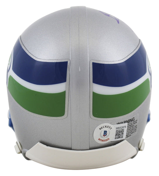 This Autographed Throwback Rep Mini Helmet has been Personally Signed by Brian Bosworth of the Seattle Seahawks. This item is 100% Authentic to include a hologram by Beckett Authentication Services. This item will come with the new Beckett Authentication hologram that has a scannable QR code rather than the traditional COA. If you would like to have a COA, you are welcome to reach out to Beckett for a printed certification once you receive your item. This is a BAS Witnessed Protection Program item which means a Beckett Authentication Service representative was present when this item was being signed. We conducted an autograph signing with Brian Bosworth where multiples of the same item were signed. While the photographs are representative of this item, the size, placement and strength of the signature may vary. Each item is hand signed, therefore, each autograph is unique. This item can be verified through BAS Witnessed.