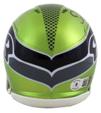 This Autographed Alternate Flash Speed Mini Helmet has been Personally Signed by DK Metcalf of the Seattle Seahawks. This item is 100% Authentic to include a hologram by Beckett Authentication Services. This item will come with the new Beckett Authentication hologram that has a scannable QR code rather than the traditional COA. If you would like to have a COA, you are welcome to reach out to Beckett for a printed certification once you receive your item. This is a BAS Witnessed Protection Program item which means a Beckett Authentication Service representative was present when this item was being signed. We conducted an autograph signing with DK Metcalf where multiples of the same item were signed. While the photographs are representative of this item, the size, placement and strength of the signature may vary. Each item is hand signed, therefore, each autograph is unique. This item can be verified through BAS Witnessed.