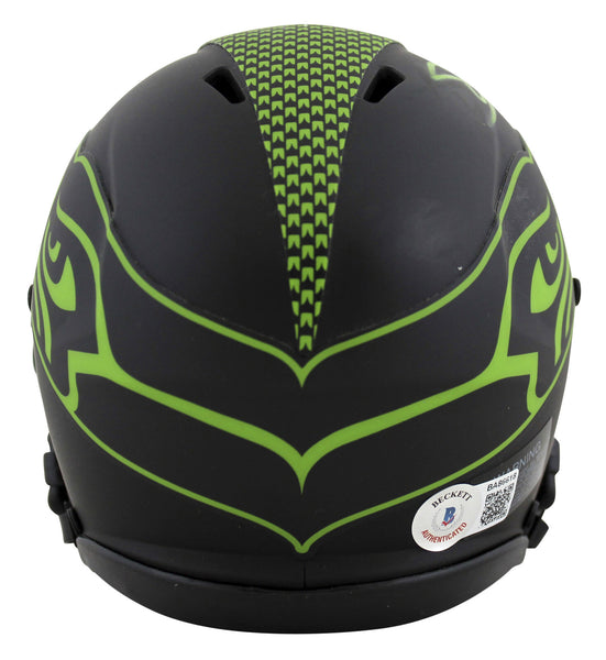 This Autographed Alternate Eclipse Speed Mini Helmet has been Personally Signed by Shaun Alexander of the Seattle Seahawks. This item is 100% Authentic to include a Certificate of Authenticity (COA) / hologram by Beckett Authentication Services. The authenticity can be verified on Beckett Authentication Services website.