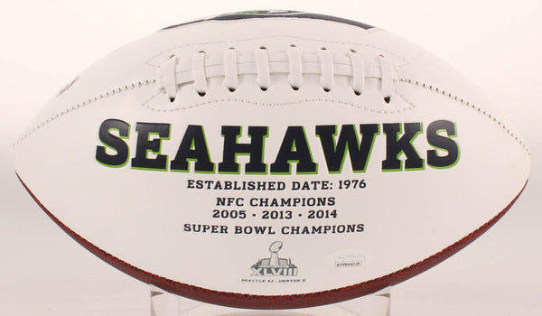 Seattle Seahawks logo football. Hand-signed in black felt-tip pen by Shaquem Griffin and Shaquill Griffin. The lot / autograph(s) includes an official James Spence Authentication (JSA) hologram and matching COA for authenticity purposes. The signing of this item was witnessed by JSA.Authentication: JSA COA