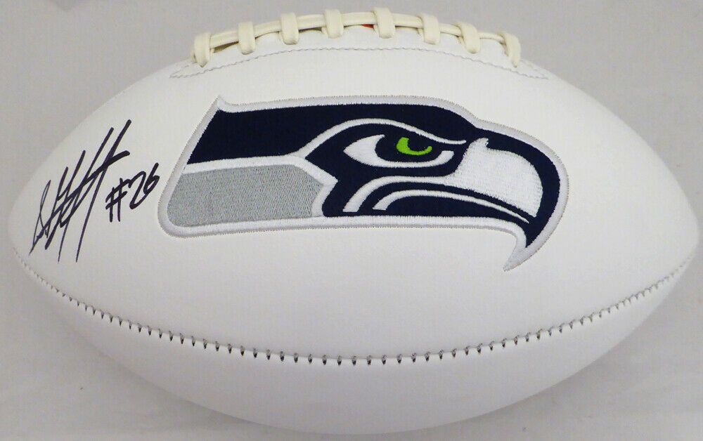 This is a White Seattle Seahawks Logo Football that has been hand signed by Shaquill Griffin. This item was signed in the presence of a Mill Creek Sports representative and comes with their serial numbered hologram and matching certificate of authenticity.