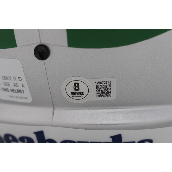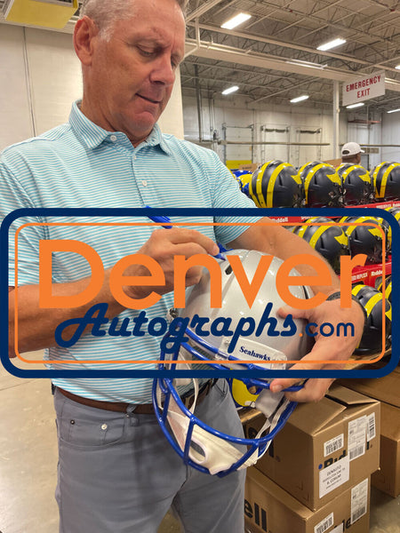 The number in the listing title is just an inventory sku for our records and is not the authentication number. The item pictured is a stock photo unless otherwise noted. This is a Seattle Seahawks Throwback Full Size Replica Speed Helmet that was personally autographed by Steve Largent with "HOF" inscription. Includes a certificate of authenticity from Beckett Authentication Services (BAS) and Denver Autographs.