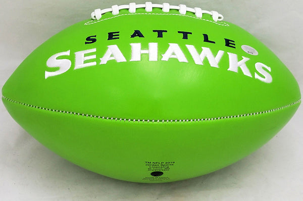 This is a Seattle Seahawks Green Logo Football that has been hand signed by Uchenna Nwosu. There is a minor imperfection in the signature as shown. This item was signed in the presence of a Mill Creek Sports representative and comes with their serial numbered hologram and matching certificate of authenticity.