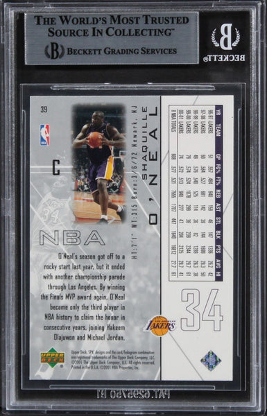 This Autographed 2001 SPX #39 Card has been Personally Signed by Shaquille O'Neal of the Los Angeles Lakers. This item is 100% Authentic, it comes slabbed and authenticated by Beckett Authentication Services. The authenticity can be verified on Beckett Authentication Services website.