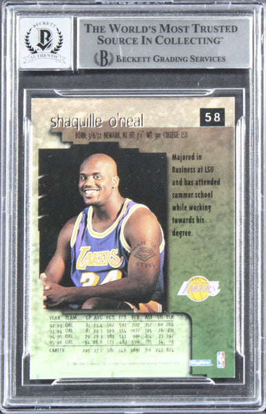 This Autographed Auto Graded Gem Mint 10! 1996 Skybox Premium #58 Card has been Personally Signed by Shaquille O'Neal of the Los Angeles Lakers. This item is 100% Authentic, it comes slabbed and authenticated by Beckett Authentication Services. We have multiples of this same item. While the photographs are representative of this item, the size and placement of the signature may vary. Each item is hand signed, therefore, each autograph is unique.