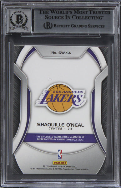 This Autographed Auto Graded Gem Mint 10! 2017 Panini Prizm Sensational Swatches #81 Card has been Personally Signed by Shaquille O'Neal of the Los Angeles Lakers. This item is 100% Authentic, it comes slabbed and authenticated by Beckett Authentication Services. The authenticity can be verified on Beckett Authentication Services website.