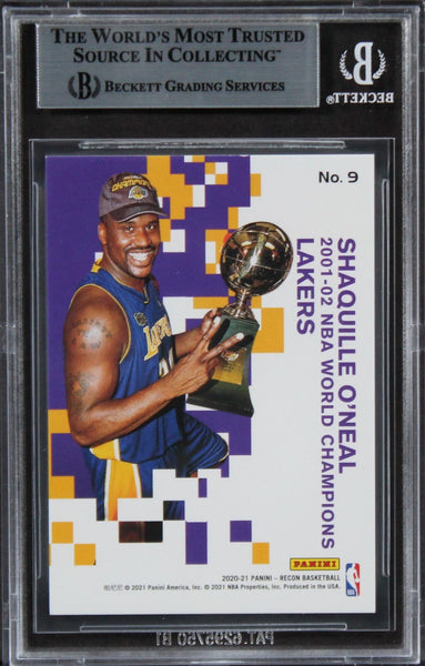 This Autographed 2020 Panini Recon Eyes On The Prize #9 Card has been Personally Signed by Shaquille O'Neal of the Los Angeles Lakers. This item is 100% Authentic, it comes slabbed and authenticated by Beckett Authentication Services. We have multiples of this same item. While the photographs are representative of this item, the size, placement and strength of the signature may vary. Each item is hand signed, therefore, each autograph is unique.