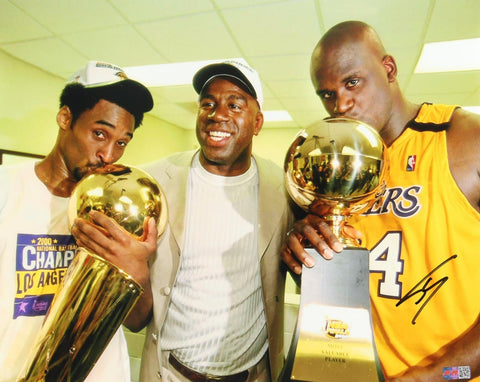 This Autographed Gold Wilson Indoor/Outdoor Basketball W/ Uv Mirrored Back Acrylic Display Case has been Personally Signed by Magic Johnson & Shaquille O'Neal of the Los Angeles Lakers. This item is 100% Authentic to include a hologram by Beckett Authentication Services. This item will come with an affixed Beckett Authentication Services (BAS) authentication sticker, which includes a scannable QR code to verify authenticity. Please note that Beckett no longer provides serial-numbered COA cards, and the attached BAS sticker will serve as the complete authentication for this item. This is a BAS Witnessed Protection Program item which means a Beckett Authentication Service representative was present when this item was being signed. We conducted an autograph signing with Magic Johnson & Shaquille O'Neal where multiples of the same item were signed. While the photographs are representative of this item, the size, placement and strength of the signature may vary. Each item is hand signed, therefore, each autograph is unique. This item can be verified through BAS Witnessed.