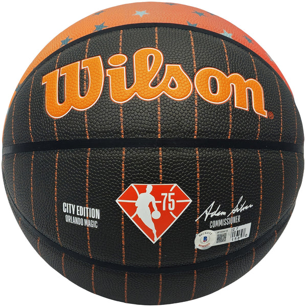 This is a 75th Anniversary City Edition Basketball that has been hand signed by Shaquille Shaq O'Neal. This item has been witnessed and certified authentic by Beckett Authentication (BAS) and comes with their tamper-proof witness hologram.