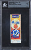This Autographed Ticket Graded EX-MT 6, Auto Graded Gem Mint 10! April 18, 1993 Magic Vs Celtics Ticket Stub has been Personally Signed by Shaquille O'Neal of the Orlando Magic. This item is 100% Authentic, it comes slabbed and authenticated by Beckett Authentication Services. The authenticity can be verified on Beckett Authentication Services website.