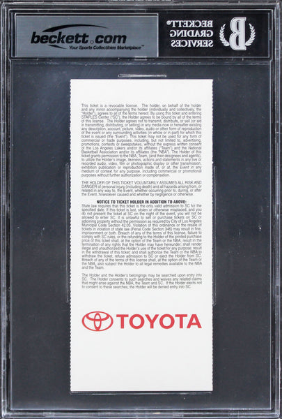 This Autographed Auto Graded Gem Mint 10! April 2, 2013 #34 Jersey Retirement Ticket Stub has been Personally Signed by Shaquille O'Neal of the Los Angeles Lakers. This item is 100% Authentic, it comes slabbed and authenticated by Beckett Authentication Services. The authenticity can be verified on Beckett Authentication Services website.