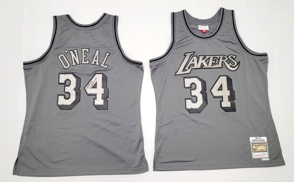 Shaquille O'Neal Signed Lakers 1996-97 Mitchell & Ness Metal Works Jersey PSAITP