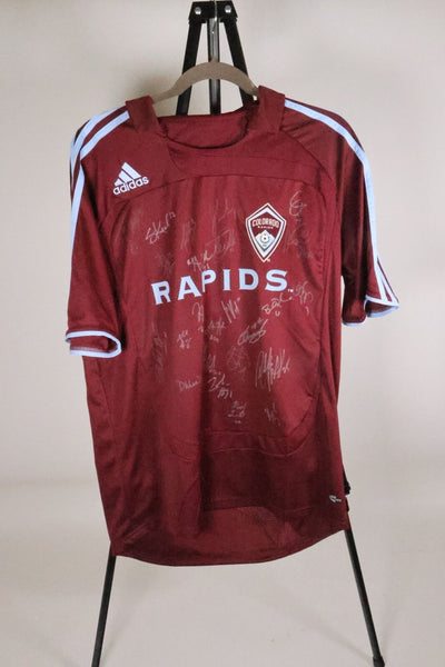 Details Colorado Rapids Burgundy Home Adidas Jersey Autographed by 2007 Colorado Rapids Team Silver Ink Signature LSM Authentication Size Medium Relive the glory of the 2007 Colorado Rapids with our exclusive Autographed Burgundy Home Adidas Jersey. This exceptional piece features the genuine silver ink signatures of the entire 2007 Colorado Rapids Team, commemorating a season that will forever hold a special place in the hearts of Rapids fans. Authenticated by LSM (League Soccer Memorabilia), this jersey assures you of the authenticity of the signatures, making it a prized possession for Rapids faithful, soccer enthusiasts, and collectors alike. Key Features:- Colorado Rapids Burgundy Home Adidas Jersey Size Medium- Autographed by the entire 2007 Colorado Rapids Team- Silver Ink Signatures for a touch of elegance- LSM Authentication guarantees the jersey's legitimacy Whether you're a passionate Rapids supporter or a soccer aficionado, this autographed jersey is a tangible piece of the team's history during the remarkable 2007 season. Elevate your sports memorabilia collection with this exceptional piece. Order your 2007 Colorado Rapids Autographed Burgundy Home Adidas Jersey now and proudly display the spirit of teamwork and excellence that defined the Rapids in 2007! #ColoradoRapids #SoccerMemorabilia #2007TeamAutograph #LSMAuthentication