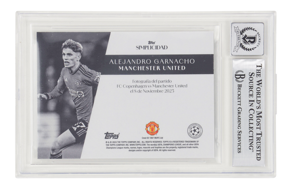 This is a Alejandro Garnacho Signed 2023-24 Topps Simplicidad UCC /99 - BGS Autograph 10. THE ITEM IN THE PICTURE IS A STOCK IMAGE. YOU WILL RECEIVE AN IDENTICAL ITEM OF EQUAL QUALITY. ALL JERSEYS ARE SIZE LARGE. Every item of signed memorabilia we sell is official and of the highest quality. We pride ourselves on providing sports fans with the most exclusive signed memorabilia on the market. We are an industry leading signed memorabilia company who can guarantee 100% authenticity on every signature we sell. The item you receive will be identical to the one you are seeing in the stock pictures. This includes the item, the authentication company, signature color and signature placement. We take pride in ensuring the authenticity of all our items. With unwavering commitment, we guarantee that every signature is 100% authentic. Every item of signed memorabilia comes with a scannable barcode which takes you to the certificate of authenticity on the company's website. These industry leading authentication companies include Beckett Authentication Services, James Spencer Authentication Services and Professional Sports Authentication Services.