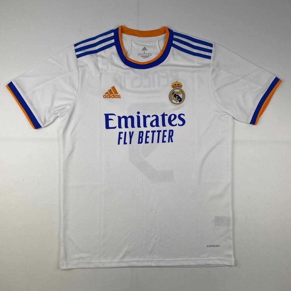 Autographed/Signed Karim Benzema Real Madrid 2021 White Jersey Beckett BAS COA Jersey has no brand names or logos. This is a custom jersey and was not manufactured by or in any manner associated with any professional sports league or manufacturer. This custom jersey carries no professional sports league designation. The item is intended to be an autographed collectible. The custom jersey displays the name and number of the player. This item in no way is affiliated with or connected to any professional sports organization. Size is XL.