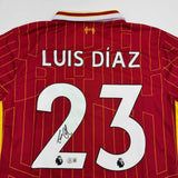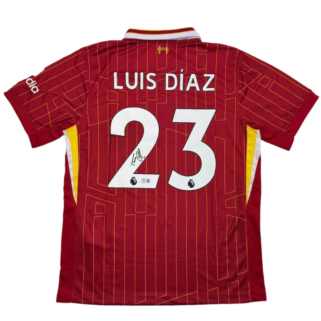 Autographed/Signed Luis Diaz Liverpool Red Soccer Jersey Beckett BAS COA Jersey has no brand names or logos. This is a custom jersey and was not manufactured by or in any manner associated with any professional sports league or manufacturer. This custom jersey carries no professional sports league designation. The item is intended to be an autographed collectible. The custom jersey displays the name and number of the player. This item in no way is affiliated with or connected to any professional sports organization. Size is XL.