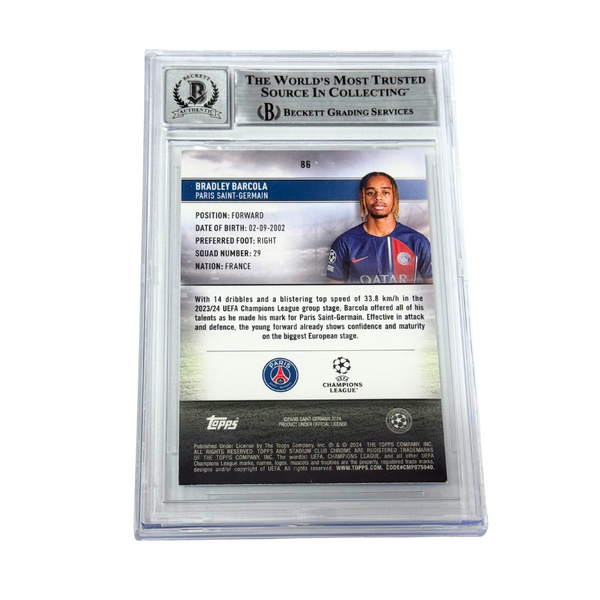 This is a Bradley Barcola Signed 2023-24 Topps Stadium Club Chrome Members - BGS 10 Auto. THE ITEM IN THE PICTURE IS A STOCK IMAGE. YOU WILL RECEIVE AN IDENTICAL ITEM OF EQUAL QUALITY. ALL JERSEYS ARE SIZE LARGE. Every item of signed memorabilia we sell is official and of the highest quality. We pride ourselves on providing sports fans with the most exclusive signed memorabilia on the market. We are an industry leading signed memorabilia company who can guarantee 100% authenticity on every signature we sell. The item you receive will be identical to the one you are seeing in the stock pictures. This includes the item, the authentication company, signature color and signature placement. We take pride in ensuring the authenticity of all our items. With unwavering commitment, we guarantee that every signature is 100% authentic. Every item of signed memorabilia comes with a scannable barcode which takes you to the certificate of authenticity on the company's website. These industry leading authentication companies include Beckett Authentication Services, James Spencer Authentication Services and Professional Sports Authentication Services.