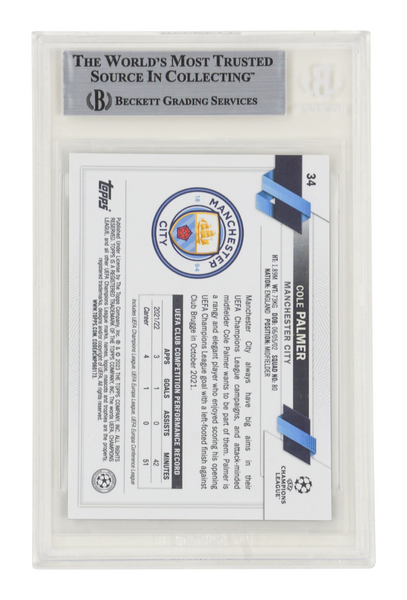 This is a Cole Palmer Signed 2022-23 Topps Chrome UCC Blue Lava #34 - BGS Authentic. THE ITEM IN THE PICTURE IS A STOCK IMAGE. YOU WILL RECEIVE AN IDENTICAL ITEM OF EQUAL QUALITY. ALL JERSEYS ARE SIZE LARGE. Every item of signed memorabilia we sell is official and of the highest quality. We pride ourselves on providing sports fans with the most exclusive signed memorabilia on the market. We are an industry leading signed memorabilia company who can guarantee 100% authenticity on every signature we sell. The item you receive will be identical to the one you are seeing in the stock pictures. This includes the item, the authentication company, signature color and signature placement. We take pride in ensuring the authenticity of all our items. With unwavering commitment, we guarantee that every signature is 100% authentic. Every item of signed memorabilia comes with a scannable barcode which takes you to the certificate of authenticity on the company's website. These industry leading authentication companies include Beckett Authentication Services, James Spencer Authentication Services and Professional Sports Authentication Services.