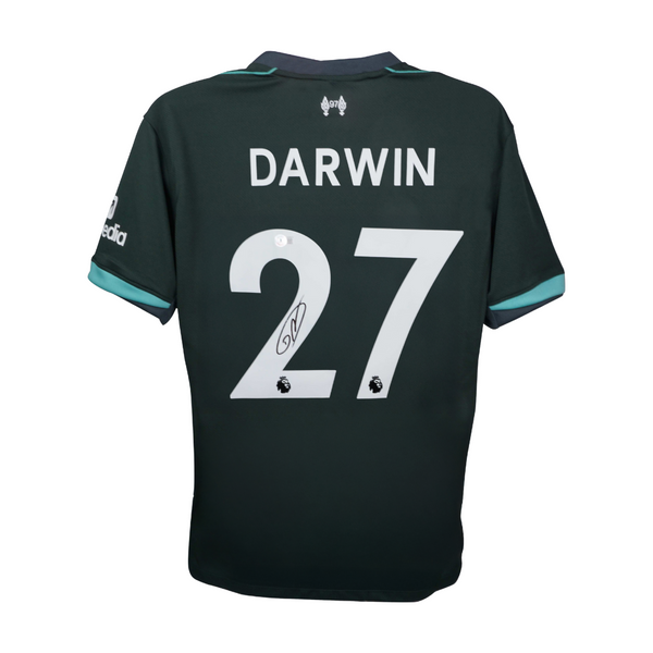 This is a Darwin Nunez Signed Liverpool FC Away Soccer Jersey #27 with Beckett COA. THE ITEM IN THE PICTURE IS A STOCK IMAGE. YOU WILL RECEIVE AN IDENTICAL ITEM OF EQUAL QUALITY. ALL JERSEYS ARE SIZE LARGE. Every item of signed memorabilia we sell is official and of the highest quality. We pride ourselves on providing sports fans with the most exclusive signed memorabilia on the market. We are an industry leading signed memorabilia company who can guarantee 100% authenticity on every signature we sell. The item you receive will be identical to the one you are seeing in the stock pictures. This includes the item, the authentication company, signature color and signature placement. We take pride in ensuring the authenticity of all our items. With unwavering commitment, we guarantee that every signature is 100% authentic. Every item of signed memorabilia comes with a scannable barcode which takes you to the certificate of authenticity on the company's website. These industry leading authentication companies include Beckett Authentication Services, James Spencer Authentication Services and Professional Sports Authentication Services.
