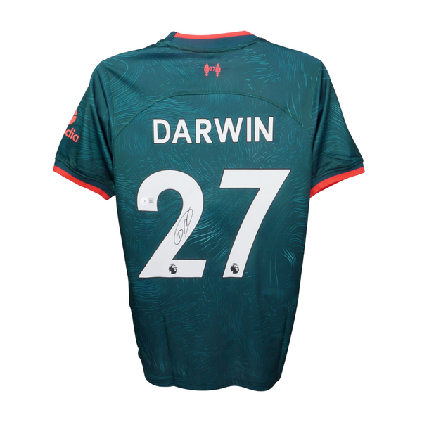 This is a Darwin Nunez Signed Liverpool FC Soccer Jersey #27 with Beckett COA. THE ITEM IN THE PICTURE IS A STOCK IMAGE. YOU WILL RECEIVE AN IDENTICAL ITEM OF EQUAL QUALITY. ALL JERSEYS ARE SIZE LARGE. Every item of signed memorabilia we sell is official and of the highest quality. We pride ourselves on providing sports fans with the most exclusive signed memorabilia on the market. We are an industry leading signed memorabilia company who can guarantee 100% authenticity on every signature we sell. The item you receive will be identical to the one you are seeing in the stock pictures. This includes the item, the authentication company, signature color and signature placement. We take pride in ensuring the authenticity of all our items. With unwavering commitment, we guarantee that every signature is 100% authentic. Every item of signed memorabilia comes with a scannable barcode which takes you to the certificate of authenticity on the company's website. These industry leading authentication companies include Beckett Authentication Services, James Spencer Authentication Services and Professional Sports Authentication Services.