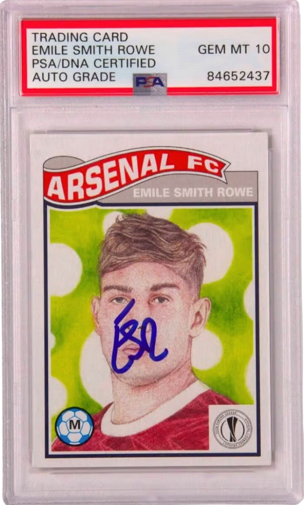 This is a Emile Smith Rowe Signed 2021 Topps Living Set #290 - PSA 10 Autograph. THE ITEM IN THE PICTURE IS A STOCK IMAGE. YOU WILL RECEIVE AN IDENTICAL ITEM OF EQUAL QUALITY. ALL JERSEYS ARE SIZE LARGE. Every item of signed memorabilia we sell is official and of the highest quality. We pride ourselves on providing sports fans with the most exclusive signed memorabilia on the market. We are an industry leading signed memorabilia company who can guarantee 100% authenticity on every signature we sell. The item you receive will be identical to the one you are seeing in the stock pictures. This includes the item, the authentication company, signature color and signature placement. We take pride in ensuring the authenticity of all our items. With unwavering commitment, we guarantee that every signature is 100% authentic. Every item of signed memorabilia comes with a scannable barcode which takes you to the certificate of authenticity on the company's website. These industry leading authentication companies include Beckett Authentication Services, James Spencer Authentication Services and Professional Sports Authentication Services.
