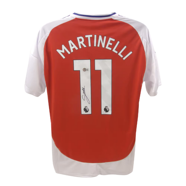 This is a Gabriel Martinelli Signed Arsenal FC Home Soccer Jersey #11 with Beckett COA. THE ITEM IN THE PICTURE IS A STOCK IMAGE. YOU WILL RECEIVE AN IDENTICAL ITEM OF EQUAL QUALITY. ALL JERSEYS ARE SIZE LARGE. Every item of signed memorabilia we sell is official and of the highest quality. We pride ourselves on providing sports fans with the most exclusive signed memorabilia on the market. We are an industry leading signed memorabilia company who can guarantee 100% authenticity on every signature we sell. The item you receive will be identical to the one you are seeing in the stock pictures. This includes the item, the authentication company, signature color and signature placement. We take pride in ensuring the authenticity of all our items. With unwavering commitment, we guarantee that every signature is 100% authentic. Every item of signed memorabilia comes with a scannable barcode which takes you to the certificate of authenticity on the company's website. These industry leading authentication companies include Beckett Authentication Services, James Spencer Authentication Services and Professional Sports Authentication Services.