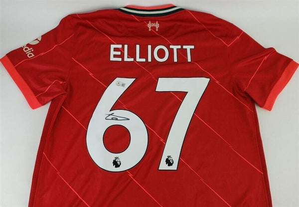 This autographed Nike soccer jersey has been personally hand-signed by Harvey Elliott of Liverpool FC.This autograph is certified by Beckett Authentication Services (BAS) Certification. It comes with the numbered authentication hologram with a QR code card that verifies the authentication on the Beckett website.