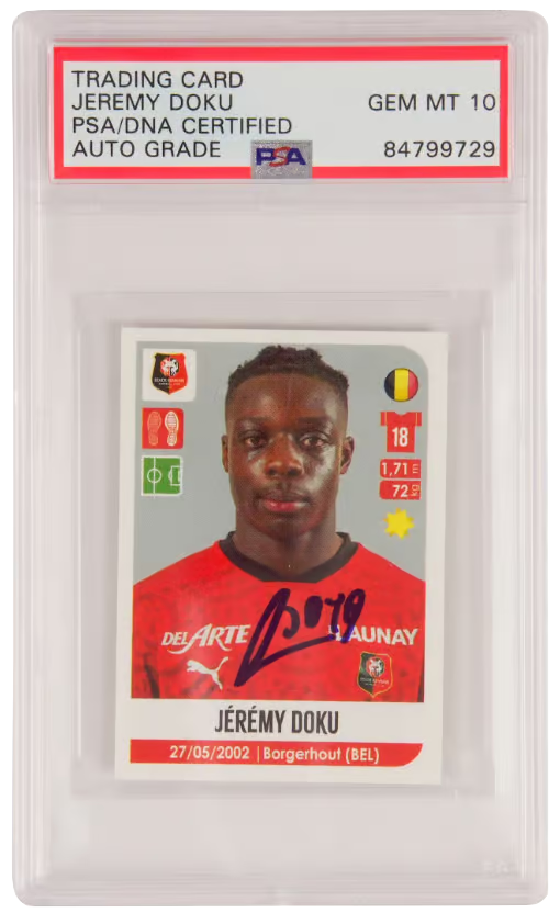 Jeremy Doku Signed 2020-21 Panini Foot Sticker #468 - PSA 10 Autograph