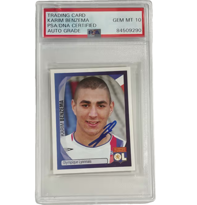 This is a Karim Benzema Signed 2007-08 Panini Champions League Sticker - PSA 10 Autograph. THE ITEM IN THE PICTURE IS A STOCK IMAGE. YOU WILL RECEIVE AN IDENTICAL ITEM OF EQUAL QUALITY. ALL JERSEYS ARE SIZE LARGE. Every item of signed memorabilia we sell is official and of the highest quality. We pride ourselves on providing sports fans with the most exclusive signed memorabilia on the market. We are an industry leading signed memorabilia company who can guarantee 100% authenticity on every signature we sell. The item you receive will be identical to the one you are seeing in the stock pictures. This includes the item, the authentication company, signature color and signature placement. We take pride in ensuring the authenticity of all our items. With unwavering commitment, we guarantee that every signature is 100% authentic. Every item of signed memorabilia comes with a scannable barcode which takes you to the certificate of authenticity on the company's website. These industry leading authentication companies include Beckett Authentication Services, James Spencer Authentication Services and Professional Sports Authentication Services.