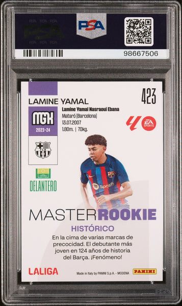 This is a Lamine Yamal Signed 2023-24 Panini Megacracks Master Rookie Card - PSA 8 Auto 10. THE ITEM IN THE PICTURE IS A STOCK IMAGE. YOU WILL RECEIVE AN IDENTICAL ITEM OF EQUAL QUALITY. ALL JERSEYS ARE SIZE LARGE. Every item of signed memorabilia we sell is official and of the highest quality. We pride ourselves on providing sports fans with the most exclusive signed memorabilia on the market. We are an industry leading signed memorabilia company who can guarantee 100% authenticity on every signature we sell. The item you receive will be identical to the one you are seeing in the stock pictures. This includes the item, the authentication company, signature color and signature placement. We take pride in ensuring the authenticity of all our items. With unwavering commitment, we guarantee that every signature is 100% authentic. Every item of signed memorabilia comes with a scannable barcode which takes you to the certificate of authenticity on the company's website. These industry leading authentication companies include Beckett Authentication Services, James Spencer Authentication Services and Professional Sports Authentication Services.