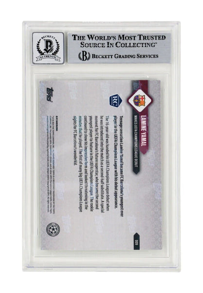This is a Lamine Yamal Signed 2023-24 Topps Now UCL #9 Rookie Card - BGS Autograph 10. THE ITEM IN THE PICTURE IS A STOCK IMAGE. YOU WILL RECEIVE AN IDENTICAL ITEM OF EQUAL QUALITY. ALL JERSEYS ARE SIZE LARGE. Every item of signed memorabilia we sell is official and of the highest quality. We pride ourselves on providing sports fans with the most exclusive signed memorabilia on the market. We are an industry leading signed memorabilia company who can guarantee 100% authenticity on every signature we sell. The item you receive will be identical to the one you are seeing in the stock pictures. This includes the item, the authentication company, signature color and signature placement. We take pride in ensuring the authenticity of all our items. With unwavering commitment, we guarantee that every signature is 100% authentic. Every item of signed memorabilia comes with a scannable barcode which takes you to the certificate of authenticity on the company's website. These industry leading authentication companies include Beckett Authentication Services, James Spencer Authentication Services and Professional Sports Authentication Services.