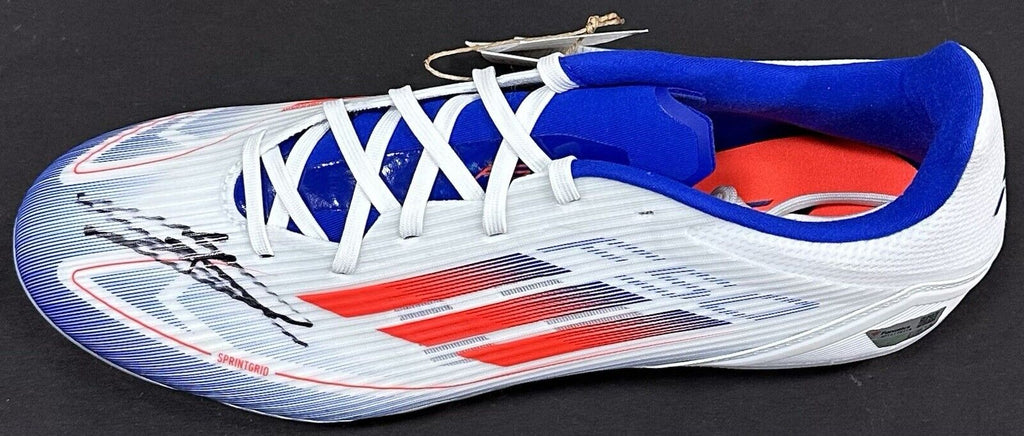 Lamine Yamal hand signed Adidas F50 multi colored cleat. Cleat is US Men's Size 10 left cleat. Hand signed in bold black on the toe of the cleat. Comes new with all original tags. Young superstar for Barcelona and played well in the 2024 Euros and was named the Young Player of the tournament. THIS IS THE EXACT CLEAT YOU RECEIVE.