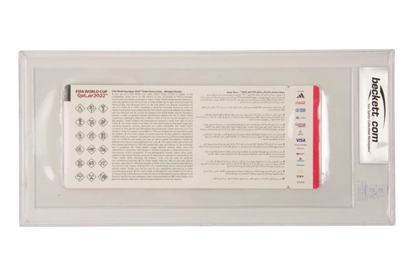 This is a Luka Modric Signed 2022 World Cup Semi Final Match Ticket - BGS Authentic. THE ITEM IN THE PICTURE IS A STOCK IMAGE. YOU WILL RECEIVE AN IDENTICAL ITEM OF EQUAL QUALITY. ALL JERSEYS ARE SIZE LARGE. Every item of signed memorabilia we sell is official and of the highest quality. We pride ourselves on providing sports fans with the most exclusive signed memorabilia on the market. We are an industry leading signed memorabilia company who can guarantee 100% authenticity on every signature we sell. The item you receive will be identical to the one you are seeing in the stock pictures. This includes the item, the authentication company, signature color and signature placement. We take pride in ensuring the authenticity of all our items. With unwavering commitment, we guarantee that every signature is 100% authentic. Every item of signed memorabilia comes with a scannable barcode which takes you to the certificate of authenticity on the company's website. These industry leading authentication companies include Beckett Authentication Services, James Spencer Authentication Services and Professional Sports Authentication Services.