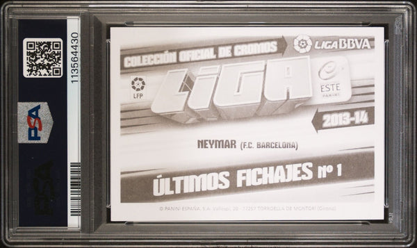 This is a Neymar Jr Signed 2013-14 Panini Colecciones Este La Liga Sticker - PSA 6 AUTO 9. THE ITEM IN THE PICTURE IS A STOCK IMAGE. YOU WILL RECEIVE AN IDENTICAL ITEM OF EQUAL QUALITY. ALL JERSEYS ARE SIZE LARGE. Every item of signed memorabilia we sell is official and of the highest quality. We pride ourselves on providing sports fans with the most exclusive signed memorabilia on the market. We are an industry leading signed memorabilia company who can guarantee 100% authenticity on every signature we sell. The item you receive will be identical to the one you are seeing in the stock pictures. This includes the item, the authentication company, signature color and signature placement. We take pride in ensuring the authenticity of all our items. With unwavering commitment, we guarantee that every signature is 100% authentic. Every item of signed memorabilia comes with a scannable barcode which takes you to the certificate of authenticity on the company's website. These industry leading authentication companies include Beckett Authentication Services, James Spencer Authentication Services and Professional Sports Authentication Services.