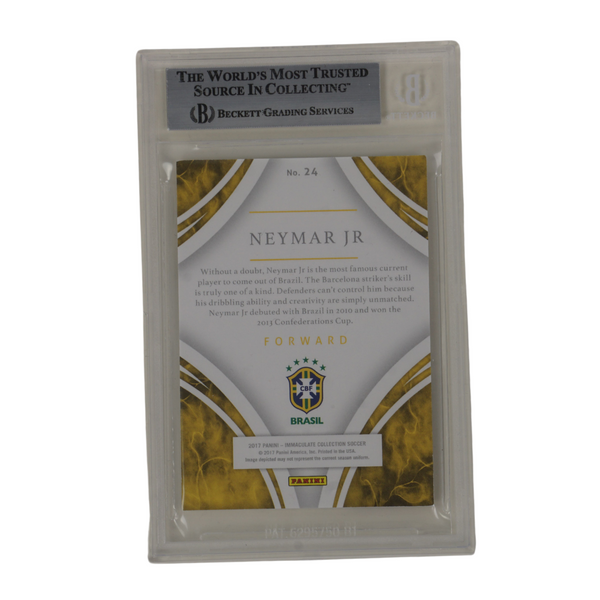 This is a Neymar Jr Signed 2017 Panini Immaculate Collection #24 - BGS Authentic. THE ITEM IN THE PICTURE IS A STOCK IMAGE. YOU WILL RECEIVE AN IDENTICAL ITEM OF EQUAL QUALITY. ALL JERSEYS ARE SIZE LARGE. Every item of signed memorabilia we sell is official and of the highest quality. We pride ourselves on providing sports fans with the most exclusive signed memorabilia on the market. We are an industry leading signed memorabilia company who can guarantee 100% authenticity on every signature we sell. The item you receive will be identical to the one you are seeing in the stock pictures. This includes the item, the authentication company, signature color and signature placement. We take pride in ensuring the authenticity of all our items. With unwavering commitment, we guarantee that every signature is 100% authentic. Every item of signed memorabilia comes with a scannable barcode which takes you to the certificate of authenticity on the company's website. These industry leading authentication companies include Beckett Authentication Services, James Spencer Authentication Services and Professional Sports Authentication Services.