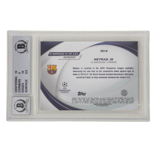 This is a Neymar Jr Signed 2023-24 Topps Chrome UCC Starball Debuts /125 - BGS 9 Auto 10. THE ITEM IN THE PICTURE IS A STOCK IMAGE. YOU WILL RECEIVE AN IDENTICAL ITEM OF EQUAL QUALITY. ALL JERSEYS ARE SIZE LARGE. Every item of signed memorabilia we sell is official and of the highest quality. We pride ourselves on providing sports fans with the most exclusive signed memorabilia on the market. We are an industry leading signed memorabilia company who can guarantee 100% authenticity on every signature we sell. The item you receive will be identical to the one you are seeing in the stock pictures. This includes the item, the authentication company, signature color and signature placement. We take pride in ensuring the authenticity of all our items. With unwavering commitment, we guarantee that every signature is 100% authentic. Every item of signed memorabilia comes with a scannable barcode which takes you to the certificate of authenticity on the company's website. These industry leading authentication companies include Beckett Authentication Services, James Spencer Authentication Services and Professional Sports Authentication Services.