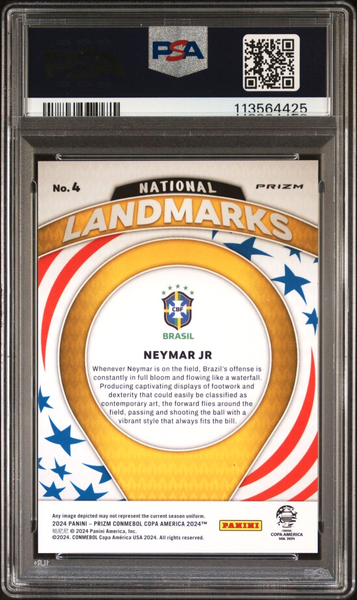 Neymar Jr Signed Panini Prizm 24 Copa America National Landmarks - PSA 9 AUTO 9