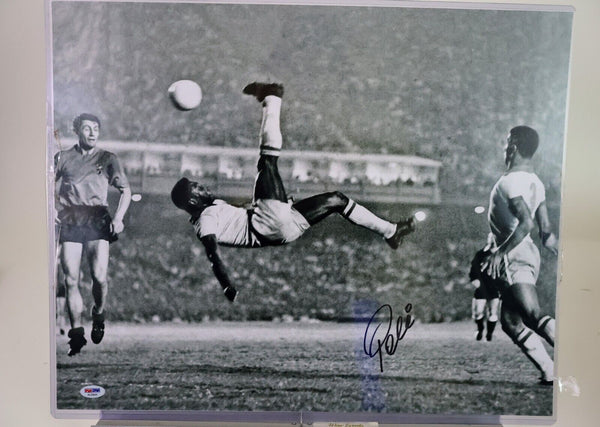 Capture the magic of soccer's greatest player with this stunning 16x20 photograph signed by the legendary Pele. As a three-time FIFA World Cup champion and one of the most iconic figures in sports history, Pele's legacy is unparalleled, and this authentic autographed photo is the ultimate addition to any sports memorabilia collection. Product Details: Authentic 16x20 photograph of Pele, soccer legend. Hand-signed by Pele. Perfect for framing and displaying in your home, office, or sports memorabilia collection. A must-have for any soccer fan or sports memorabilia collector. Comes with a Certificate of Authenticity to ensure the legitimacy of the signature. Please Note: Each autographed photo may vary slightly as it is hand-signed, adding to its uniqueness and value.