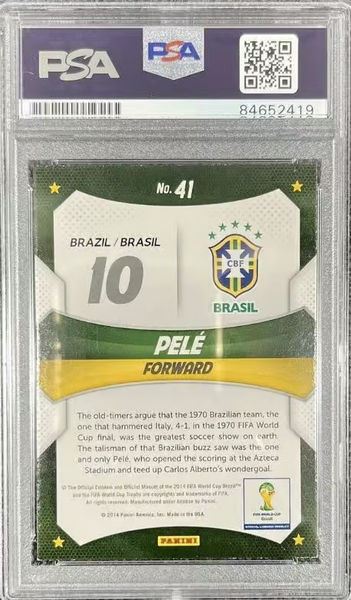 This is a Pele Signed 2014 Panini Prizm World Cup Stars #41 - PSA 10 Autograph. THE ITEM IN THE PICTURE IS A STOCK IMAGE. YOU WILL RECEIVE AN IDENTICAL ITEM OF EQUAL QUALITY. ALL JERSEYS ARE SIZE LARGE. Every item of signed memorabilia we sell is official and of the highest quality. We pride ourselves on providing sports fans with the most exclusive signed memorabilia on the market. We are an industry leading signed memorabilia company who can guarantee 100% authenticity on every signature we sell. The item you receive will be identical to the one you are seeing in the stock pictures. This includes the item, the authentication company, signature color and signature placement. We take pride in ensuring the authenticity of all our items. With unwavering commitment, we guarantee that every signature is 100% authentic. Every item of signed memorabilia comes with a scannable barcode which takes you to the certificate of authenticity on the company's website. These industry leading authentication companies include Beckett Authentication Services, James Spencer Authentication Services and Professional Sports Authentication Services.