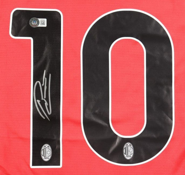 Featured is a Rafa Leao signed AC Milan Puma soccer jersey. This jersey was hand signed by Leao and comes with the Beckett hologram and certificate of authenticity. Jersey size may vary. This jersey would make a great addition to any sports memorabilia collection! SPECIFICATIONS Autographed By: Rafa Leao Team: AC Milan Sport: Soccer Authentication: Beckett Grading Services