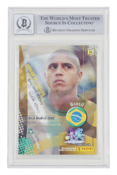 This is a Roberto Carlos Signed 2002 Panini World Cup Japan #14 - BGS 10 Witnessed. THE ITEM IN THE PICTURE IS A STOCK IMAGE. YOU WILL RECEIVE AN IDENTICAL ITEM OF EQUAL QUALITY. ALL JERSEYS ARE SIZE LARGE. Every item of signed memorabilia we sell is official and of the highest quality. We pride ourselves on providing sports fans with the most exclusive signed memorabilia on the market. We are an industry leading signed memorabilia company who can guarantee 100% authenticity on every signature we sell. The item you receive will be identical to the one you are seeing in the stock pictures. This includes the item, the authentication company, signature color and signature placement. We take pride in ensuring the authenticity of all our items. With unwavering commitment, we guarantee that every signature is 100% authentic. Every item of signed memorabilia comes with a scannable barcode which takes you to the certificate of authenticity on the company's website. These industry leading authentication companies include Beckett Authentication Services, James Spencer Authentication Services and Professional Sports Authentication Services.