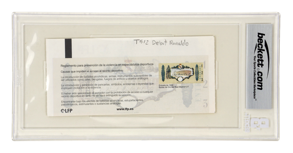 This is a Ronaldo Nazario Signed 2002 Real Madrid Debut + 2 Goals Match Ticket - BGS 4. THE ITEM IN THE PICTURE IS A STOCK IMAGE. YOU WILL RECEIVE AN IDENTICAL ITEM OF EQUAL QUALITY. ALL JERSEYS ARE SIZE LARGE. Every item of signed memorabilia we sell is official and of the highest quality. We pride ourselves on providing sports fans with the most exclusive signed memorabilia on the market. We are an industry leading signed memorabilia company who can guarantee 100% authenticity on every signature we sell. The item you receive will be identical to the one you are seeing in the stock pictures. This includes the item, the authentication company, signature color and signature placement. We take pride in ensuring the authenticity of all our items. With unwavering commitment, we guarantee that every signature is 100% authentic. Every item of signed memorabilia comes with a scannable barcode which takes you to the certificate of authenticity on the company's website. These industry leading authentication companies include Beckett Authentication Services, James Spencer Authentication Services and Professional Sports Authentication Services.