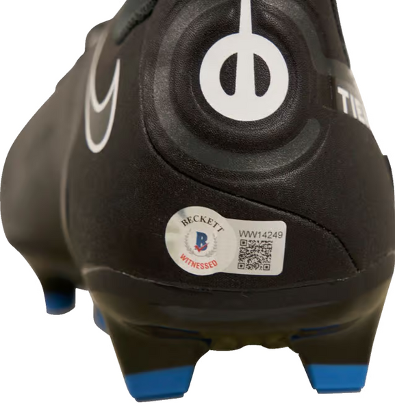 This is a Ronaldo Nazario Signed Nike Soccer Cleat with Beckett Witness. THE ITEM IN THE PICTURE IS A STOCK IMAGE. YOU WILL RECEIVE AN IDENTICAL ITEM OF EQUAL QUALITY. ALL JERSEYS ARE SIZE LARGE. Every item of signed memorabilia we sell is official and of the highest quality. We pride ourselves on providing sports fans with the most exclusive signed memorabilia on the market. We are an industry leading signed memorabilia company who can guarantee 100% authenticity on every signature we sell. The item you receive will be identical to the one you are seeing in the stock pictures. This includes the item, the authentication company, signature color and signature placement. We take pride in ensuring the authenticity of all our items. With unwavering commitment, we guarantee that every signature is 100% authentic. Every item of signed memorabilia comes with a scannable barcode which takes you to the certificate of authenticity on the company's website. These industry leading authentication companies include Beckett Authentication Services, James Spencer Authentication Services and Professional Sports Authentication Services.
