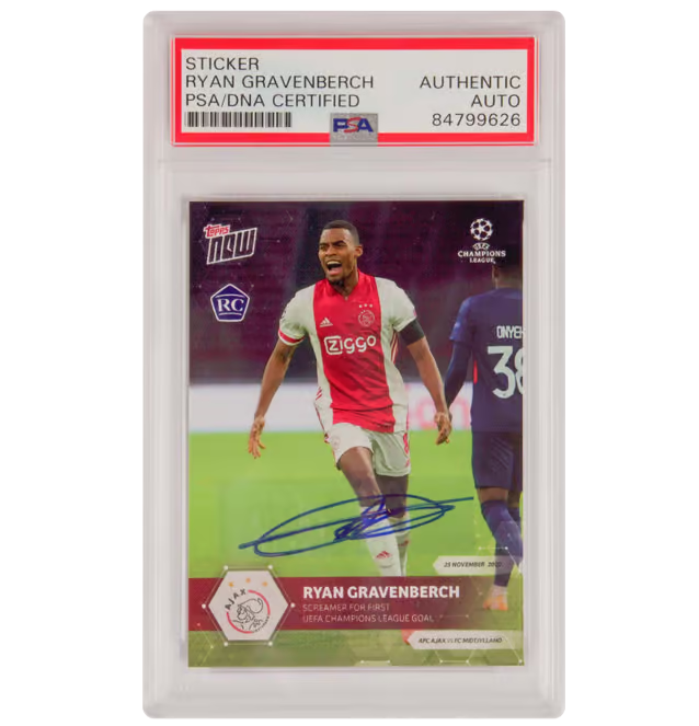 This is a Ryan Gravenberch Signed 2020-21 Topps Now UCL Rookie #23 - PSA Authentic. THE ITEM IN THE PICTURE IS A STOCK IMAGE. YOU WILL RECEIVE AN IDENTICAL ITEM OF EQUAL QUALITY. ALL JERSEYS ARE SIZE LARGE. Every item of signed memorabilia we sell is official and of the highest quality. We pride ourselves on providing sports fans with the most exclusive signed memorabilia on the market. We are an industry leading signed memorabilia company who can guarantee 100% authenticity on every signature we sell. The item you receive will be identical to the one you are seeing in the stock pictures. This includes the item, the authentication company, signature color and signature placement. We take pride in ensuring the authenticity of all our items. With unwavering commitment, we guarantee that every signature is 100% authentic. Every item of signed memorabilia comes with a scannable barcode which takes you to the certificate of authenticity on the company's website. These industry leading authentication companies include Beckett Authentication Services, James Spencer Authentication Services and Professional Sports Authentication Services.