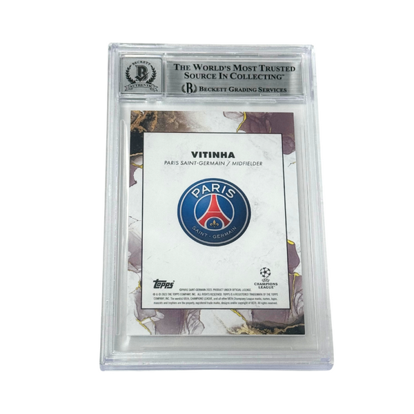 This is a Vitinha Signed 2022-23 Topps Inception UCC #113 - BGS 10 Autograph. THE ITEM IN THE PICTURE IS A STOCK IMAGE. YOU WILL RECEIVE AN IDENTICAL ITEM OF EQUAL QUALITY. ALL JERSEYS ARE SIZE LARGE. Every item of signed memorabilia we sell is official and of the highest quality. We pride ourselves on providing sports fans with the most exclusive signed memorabilia on the market. We are an industry leading signed memorabilia company who can guarantee 100% authenticity on every signature we sell. The item you receive will be identical to the one you are seeing in the stock pictures. This includes the item, the authentication company, signature color and signature placement. We take pride in ensuring the authenticity of all our items. With unwavering commitment, we guarantee that every signature is 100% authentic. Every item of signed memorabilia comes with a scannable barcode which takes you to the certificate of authenticity on the company's website. These industry leading authentication companies include Beckett Authentication Services, James Spencer Authentication Services and Professional Sports Authentication Services.