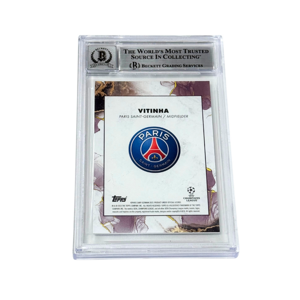This is a Vitinha Signed 2022-23 Topps Inception UCC /99 Green #113 - BGS 10 Autograph. THE ITEM IN THE PICTURE IS A STOCK IMAGE. YOU WILL RECEIVE AN IDENTICAL ITEM OF EQUAL QUALITY. ALL JERSEYS ARE SIZE LARGE. Every item of signed memorabilia we sell is official and of the highest quality. We pride ourselves on providing sports fans with the most exclusive signed memorabilia on the market. We are an industry leading signed memorabilia company who can guarantee 100% authenticity on every signature we sell. The item you receive will be identical to the one you are seeing in the stock pictures. This includes the item, the authentication company, signature color and signature placement. We take pride in ensuring the authenticity of all our items. With unwavering commitment, we guarantee that every signature is 100% authentic. Every item of signed memorabilia comes with a scannable barcode which takes you to the certificate of authenticity on the company's website. These industry leading authentication companies include Beckett Authentication Services, James Spencer Authentication Services and Professional Sports Authentication Services.
