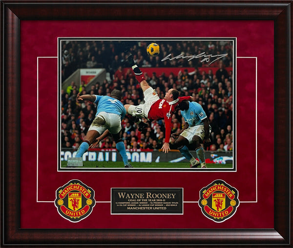 This photo is custom framed to 20x24 has been personally hand signed by Wayne Rooney of Manchester United100% AuthenticCertificate of Authenticity by IconsExact location of signature may vary