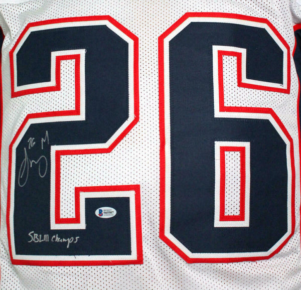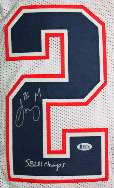 Sony Michel Autographed White Pro Style Jersey W/ SB Champs- Beckett W Auth *2 THIS IS NOT AN NFL JERSEY. THIS HAS NO TAGS, NO LOGOS, NO EMBLEMS. This is a hand autograph of Sony Michel on a Custom Made (non name brand) Authentic Style Jersey with stitched letters and numbers. This item is inscribed with SB Champs. This item has a Beckett Witnessed Authentication, which comes with a numbered and a matching Beckett Certificate of Authenticity. You can view this item on the Beckett Authentication website and it shows when and where the item was signed. It was signed either at a public autograph appearance or a private signing. This is a stock photo of the item. Although you may not receive this exact item, the item you receive is virtually identical and brand new in great shape. Jersey size is XL.
